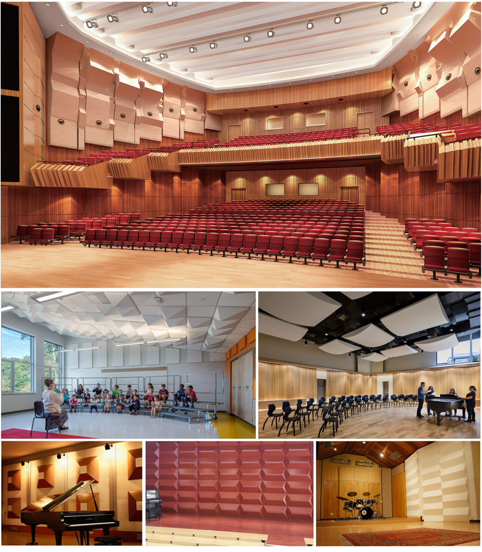 • 聲學特點擴散體主要使用在廳堂的臺口及兩側的耳光,目的是把聲波反射擴散到廳堂內觀眾席,避免引起聲染色聲聚焦和駐波的聲場問題使音質細膩精準