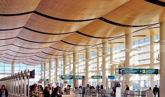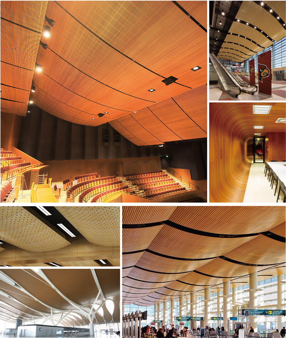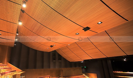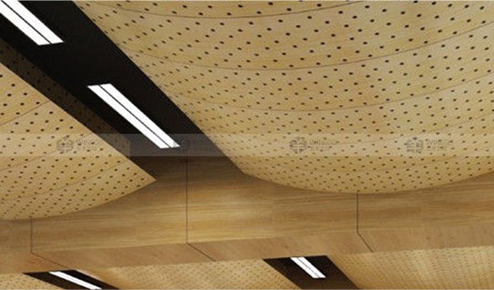 弧形天花以及弧形墻面板,最近越來越受設計師以及客戶的青睞,廣泛的應用于各種高端裝飾設計。我們運用密度板板材的特性,在槽孔以及孔木的基礎上,采用特別的工藝,衍生出弧形板。弧形板的槽孔結構以及通孔結構符合聲學原理,在中低頻吸聲上效果顯著。飾面的弧形結構,有一定程度的擴散效果,改善混響時間顯著,有效提高環(huán)境音質飽滿度、清晰度和立體感。另外,飾面的多樣性以及弧形的造型,不僅給客戶多樣化的選擇,也增強墻面天花裝飾的流暢感和立體感。